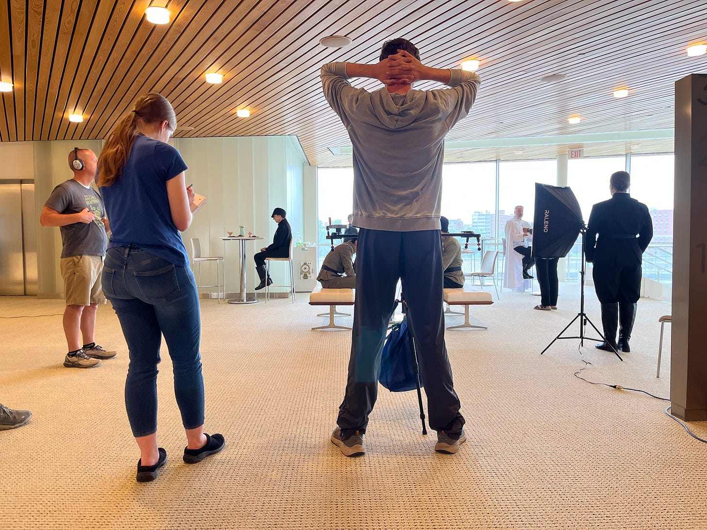 We had the honor of filming at Hancher Auditorium. This is the restaurant scene and it was our first long day with a 6 a.m. call time- it went so well but I could barely walk that night!