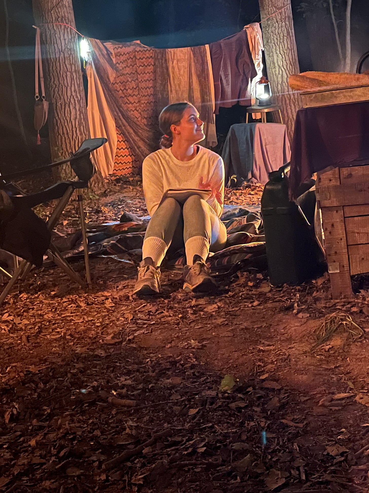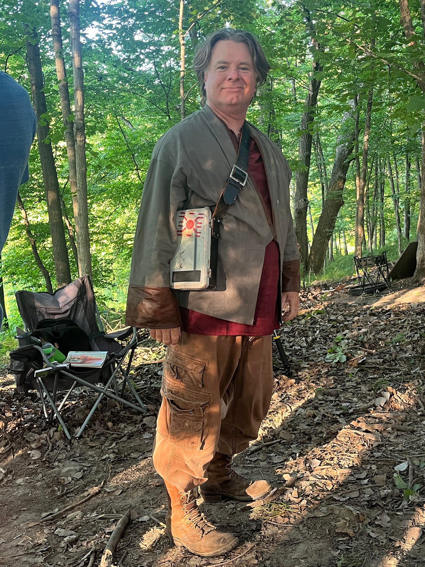 A jedi master checking out the lofted tent and campsite at large.