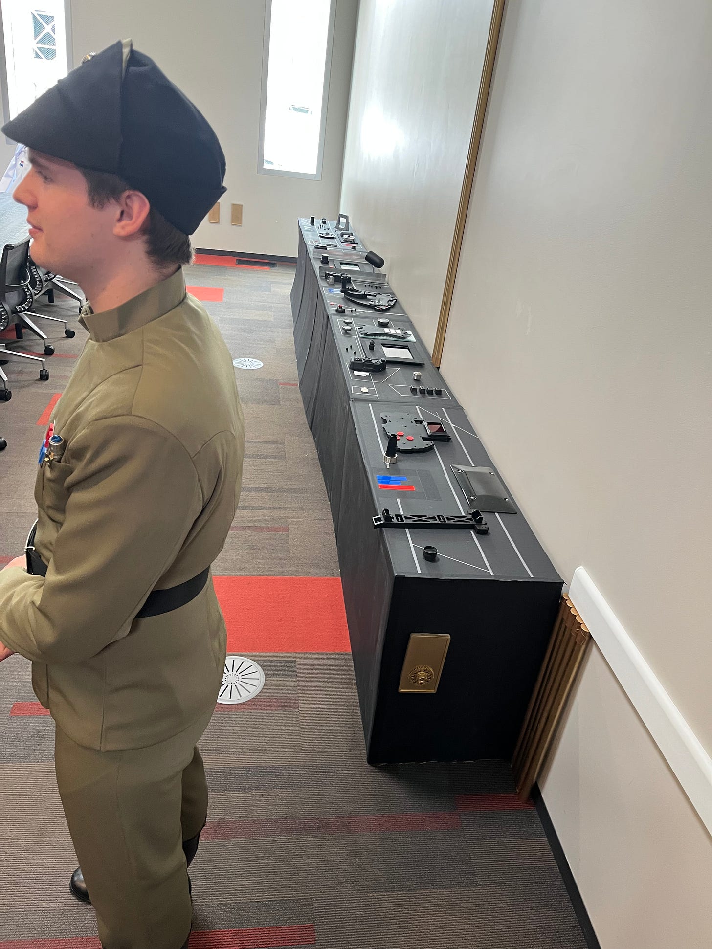 An 18’ Imperial control console built specifically to cover a low bookshelf at the library.